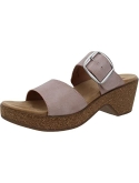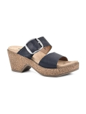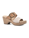 Polyurethane sole Cushioned comfort footbed Adjustable buckle 2.75" platform heel Clog-inspired sandal Cork platform