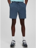 Soft, lightweight cotton corduroy shorts. Elasticized waist with drawcords. Front slant pockets. Single button-flap patch pocket. #869755 100% Cotton Imported. Straight silhouette with a relaxed fit. Hits above the knee.