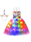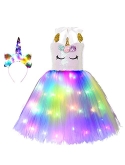 LED LIGHT UP DRESS - This stunning LED light up unicorn costume has a unique unicorn pattern on the upper body. Colorful strips tulle is really attractive to kids. Girls can wear dress without LED light during the day and turn on the LED light at night. Due to the effect of LED light up, your girls will looks more glamorous