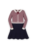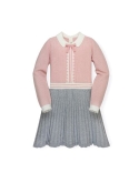 Your girl will be ready to twirl in our soft organic fit and flare sweater dress! Features a sweater knit collar, textured bodice with vintage-inspired trim, a full skirt, and a back keyhole closure. An absolutely darling look.