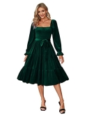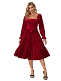 EXCLUSIVE LUCKY COLOR ! The Long Sleeve Velvet Dress Comes With Five Colors: Black Vintage Ruched Dress/Red Elegant Velvet Dress/Bule Square Neck Knee Length Dress/Army Green Sexy Flowy Dress/Pink Cocktail Dress