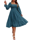Material: 100%Polyester, super soft lightweight and not see through, smocked maxi dress is easy to wear, Velvet/Chiffon long dresses keep you comfortable.