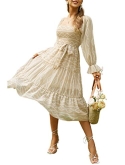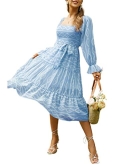 Perfect Formal Dresses: smocked hight waist and the swinging long skirt part with ruffle at hem add more aweet taste and make you more attractive