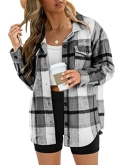 Feature:It features soft fuzzy fabric, front button closure, and midweight feel for keeping warm all day. It'll be the prefect addition to your wardrobe.Two buttoned chest pockets / two welted hand pockets / long sleeves with button cuffs / plaid pattern / loose fit shacket / collared.This shacket is a must have in your closet!
