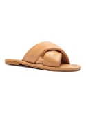 Cross band slide sandals Slip on for easy on off TPR outsole Polyurethane midsole Polyurethane upper Open toe Slip-on closure