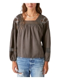 So soft in a cotton fabrication, Lucky Brand's embroidered-shoulder top lends a feminine touch with intricate embroidery details and a square neckline. Pair with jeans and boots to complete the look.