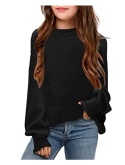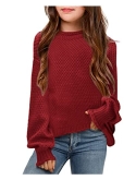 Fall Winter SweaterIt features a mock neck design, solid color, unique knitted texture, and ribbed details. Chunky knit pullover sweater for girls aged 4-13, size: 110-160