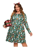 [Features]: Casual Plus Size Christmas Dress, Round Neck, Pleated Swing Dress, Ruffle Hem, lovely print are very suitable for Christmas.The flirtatious flare skirt is outfitted with ruffle hem for retro style.