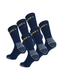 Pack of 6 pairs of work socks suitable for use with safety shoes; the socks are available in blue, black, white and gray and in sizes 7-9, 8-11, 10-12 and 12-15. The Caterpillar work sock has reinforced toe and heel to prevent bubbles and blisters caused by work shoes.