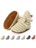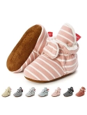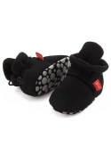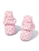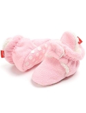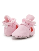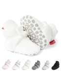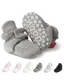 HOOK-LOOP&EASY ADJUSTMENT-Baby Booties are Closed by Hook-Loop.It is Easy to Adjust the Tightness Suitable for the Baby According to the Baby's Foot Shape Keeping Them on the Babys Feet Better and Hard for Babies to Rip Off.The Hook-Loop Multiple Cycles in the Washer/Drier Didnt Affect the Straps Ability to Close.They Dont Fall Off Babies Feet While He Crawls Around.