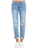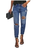 The boyfriend jeans feature high rise and broken holes design. Casual denim pants for women. Ankel length jeans.