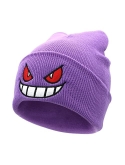 Unique Purple Beanie Hat with a Ghost grinning face.