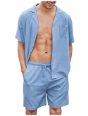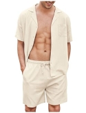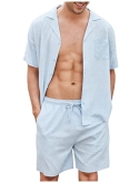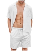 Casual Summer 0utfits --- Men beach shirts and shorts, button-down short sleeve, turn-up collar and left chest pocket. Linen beach shorts relaxed fit, with tow side deep pockets, elastic waist drawstring, simple style. Combine them together or pair them with different tops or pants for a great summer look.