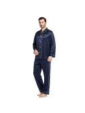 LOOK DECENT, FEEL RELAXED, DELICATE PIPING: Classic lapel collar, Simple but Graceful; The Trimmed Details Make It A Perfect One for Business Travel; 1 patch decorative fake chest pocket with white piping; Pant features button fly and the half-elastic waist with a drawstring. Double row white piping at the placket and pants and mother of pearl buttons makes you look handsome and attractive.
