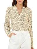 Stand Collar, V Neck, Long Sleeve, Floral Print, Button Closure, Button Cuffs