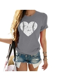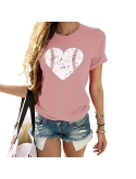 Feature: Round Neck Funny Love Heart Graphic Print Mother's Day Shirts, Casual T-shirts for Women Juniors