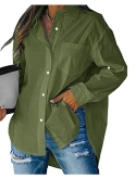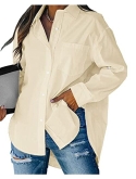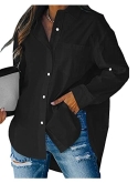 Features: Long sleeve, collared, button up, lightweight, cuffed sleeve with roll tap can be 3/4 sleeve, solid color, one pocket at chest, turn down collar, v neck, basic plain shirts for women