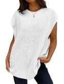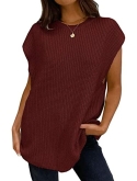 Feature: Sleeveless, crew neck, solid color, loose fit, casual ribbed sweater vest for women