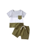 Feature: baby boy summer shorts set,fashion black grey green patchwork baby boy short sleeve shirt and shorts set,baby boy pocket color block t-shirt top tee and elastic pocket casual shorts summer clothing outfit set 2pcs,stylish and handsome.
