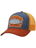 Cap with a nostalgic fish motif. Exciting colour combinations, a large logo patch and sophisticated material contrasts characterise the multifaceted look of this high-quality trucker cap from Stetson.
