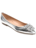 Step into elegant style with the Renzo flats by Journee Collection. These flats feature jeweled clusters on a pointed toe style which compliments the sleek silhouette. Padded insoles create a comfortable fit to complete the design.