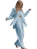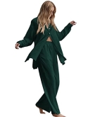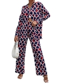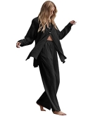 FEATURES: Two piece long sleeve blouse pants set, drop shoulder, loose fit, print and solid color, oversized buttow down tops, lapel collar, wide leg long trousers, slit hem that can show your beautiful figure.