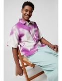 Short sleeve cotton shirt by Urban Outfitters with an allover dye pattern. Regular fit with a button-down front, left chest pocket and standard collar.
