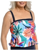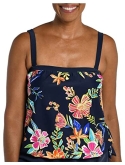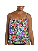 DESIGNER SUMMER SWIMWEAR A bevvy of blooms in colorful combinations brings a pop of personality to this tankini.