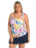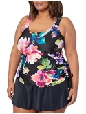 DESIGNER SUMMER SWIMWEAR With all the vibrancy of a field of wildflowers, our scoop-neck plus-size swim dress brings to mind sunshine on a warm summer day.