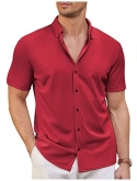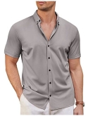 All Matching ---- The men's summer button up athletic shirt is comfortable and breathable, you can pair with shorts to creat a casual look, or match with jeans for bodybuilding look. Men's short sleeve stretch shirt is perfect for spring and summer.