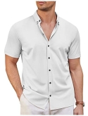 Fashionable Design ---- This men casual button down shirt with collar buttons, making collar stays perfect. Button down closure, short sleeve, classic turn down collar. Wearing this men's casual shirts will keep you looking great and for a stylish look.