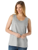 This casual scoop neck tankis a wardrobe staple. Made in a relaxed, roomy fit thats super comfortable, a pure cotton fabrication and sleeveless silhouette make it great for layering or wearing alone on warmer days.