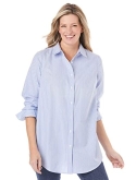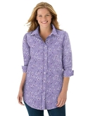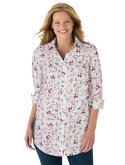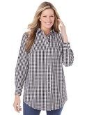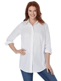Shirt collar. Button-front with placket. Button cuffed long sleeves. Shirttail hem