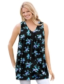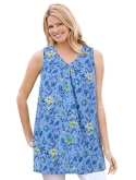 Soft cotton jersey constructs this comfy tank top, made in a tunic length to effortlessly cover the hips. Pretty and fun prints add a pop of color to your look. Layer this under jackets and cardis or wear it along on warmer days you love the breezy V-neck and sleeveless silhouette.