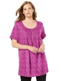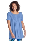 Adorned with pretty pintucks at the chest, this lovely Henley tunic is accented with a relaxed body and feminine drape. Weve made it in the perfect tunic length to match with leggings, jeans or capris.