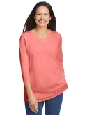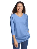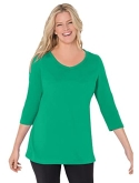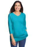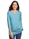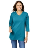 Made in a relaxed and roomy fit, this knit V-neck tee will become a staple in your collection. Our Perfect tees are soft, comfortable and feel amazing wash after wash. Three-quarter sleeves hit at just the right length. A lovely choice year round.