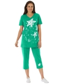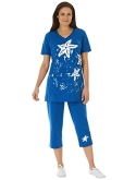 This ocean-themed set is summer dressing at its best. This set consists of a v-neck tee and elastic waist capris. Relaxed, comfortable, and fun!