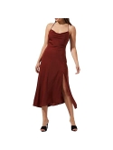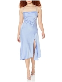 Adjustable straps and a soft cowl neckline highlight your figure in addition to exposing a leg-baring side slit.
