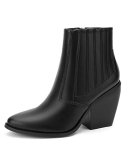 EASY TO WEAR: Women's ankle booties with chunky stacked heel, soft and breathable insoles you wear them all day without feeling tired. Both side elastic for easy in and out of the boots.