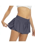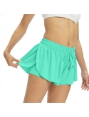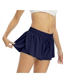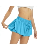 1:Built in spandex. Flowy outer shorts, No pockets, Drawstring Closure.