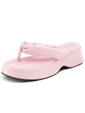 Slip into both contemporary design and comfort, with these thong platform slide sandals. The padded design is set on platform soles for added elevation.