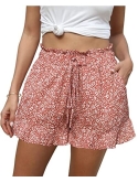 FEATURES: S=US 4-6M=US 8-10L=US 12-14XL=US 16-18XXL=US 20-22 / Elastic High Waist / Two Side Pockets / Decorative Drawsring Design / Wide Leg / Ruffle Hem / Cute Floral Patterned / Loose Fit / Soft And Lightweight Fabric / Womens Shorts / Shorts For Summer / Casual Shorts