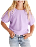 Season: Girls short puff sleeve casual t-shirt for summer, and solid color makes it easy to be paired and never out of style, paired with jeans, shorts, pants.