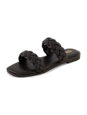 Foam sole Heel measures approximately 0.5 inches" Soft Vegan Leather braided upper Easy on / off Memory Foam Padded Insole Flexible Long Lasting Traction Outsole / Bottom .5 Inch heel