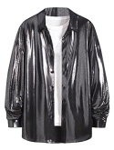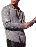 Features: sheer, glitter, button front, long sleeve, casual shirt