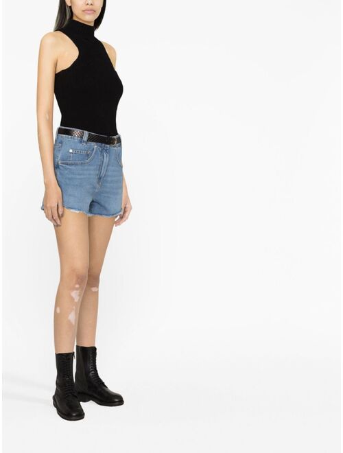 The Japa shorts are Iro's take on the staple denim shorts. Cut to a trendy, low-rise silhouette, the mid-wash denim piece is minimalist and classic, not straying away from the traditional design of denim shorts. Frayed detailing at the hem adds an understated, distressed touch.
