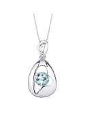 TILTED HEART SOLITAIRE GEMSTONE PENDANT - Original design from Peora, blue Aquamarine pendant features an open cut out frame allowing the stone to sparkle from all angles. Beautiful smooth setting is a fresh and versatile way to wear minimalist jewelry. Wear alone or layered with your favorite necklaces. Dimension: 0.88 x 0.50 inch.