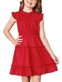 BesserBay Girls Tiered Dress Sleeveless Ruffle Summer Swing Dress 4-12 Years