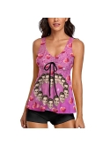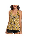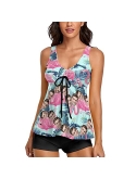 FEATURE:Swimsuit Top + Boxer Swim Shorts.This two piece swimsuit is made of 86% polyester and 14% spandex. Light weight and soft, comfortable and breathable.Designed for fashion women,Printed swimsuit with boxer shorts, adjustable neckline with chest drawer, comfortable soft cups provide you enough support, swimsuit top with boxer shorts can hide your tummy and make you look slimmer, stylish, sexy and attractive.