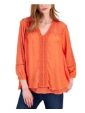 Your new favorite casual top, this Style & Co top features a V-neck design and beautiful embroidered, lace-like trim and accents.